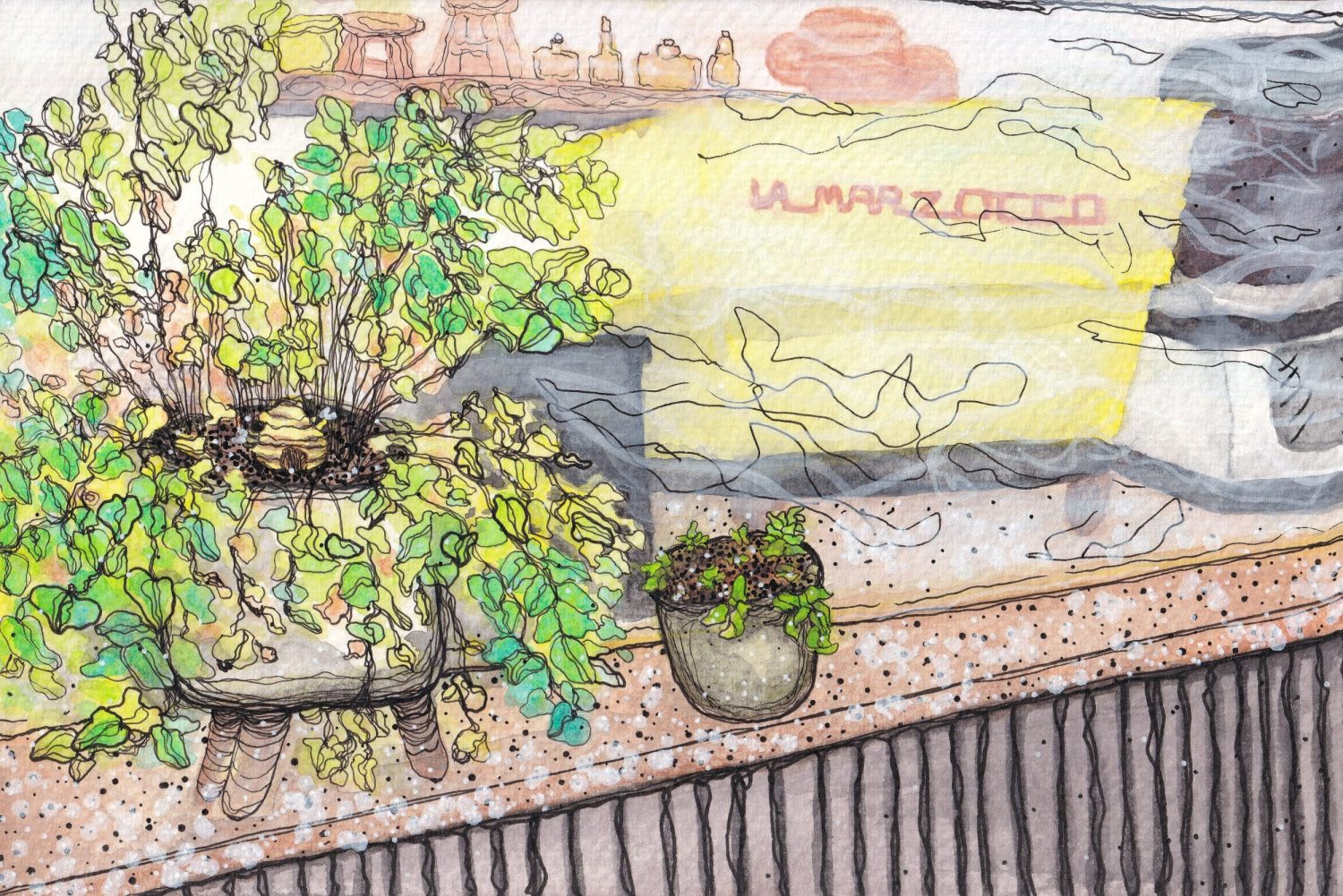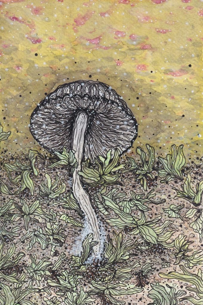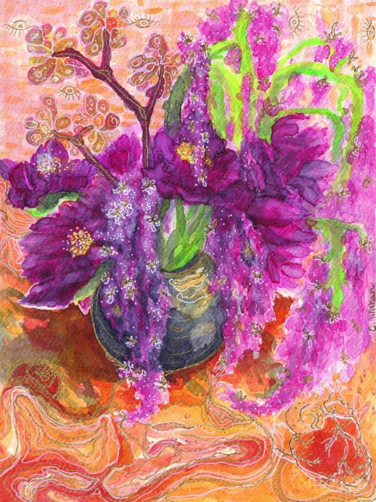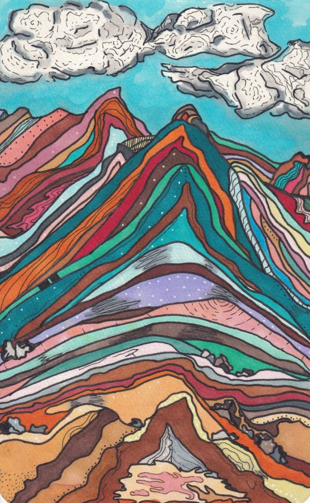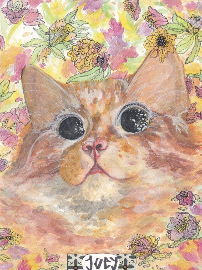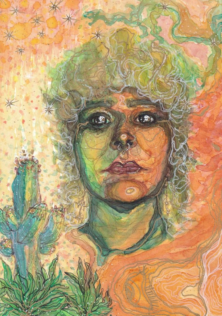 This is Ceraline Works. Mixed media, including watercolor, ink, acrylic, pencil, alcohol marker, yarn… Hand painted, drawn, crafted, AND created in Phoenix, AZ.